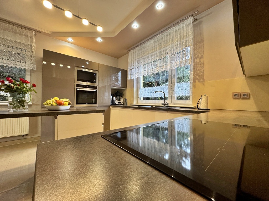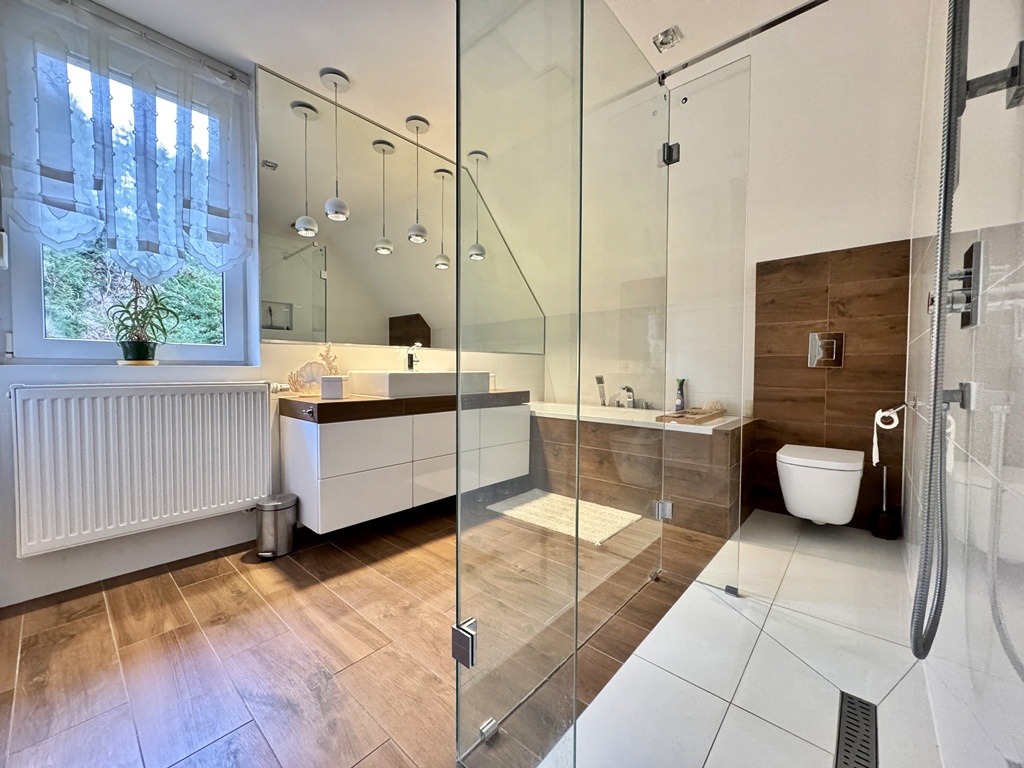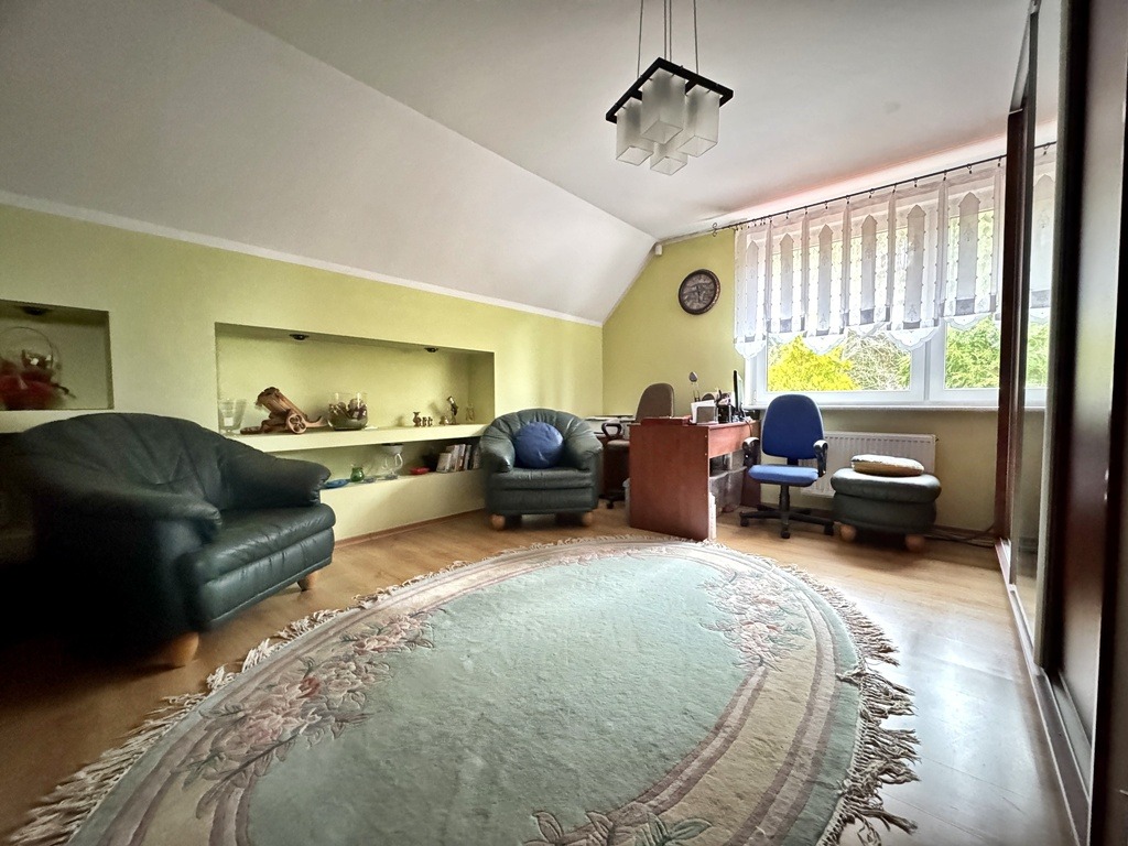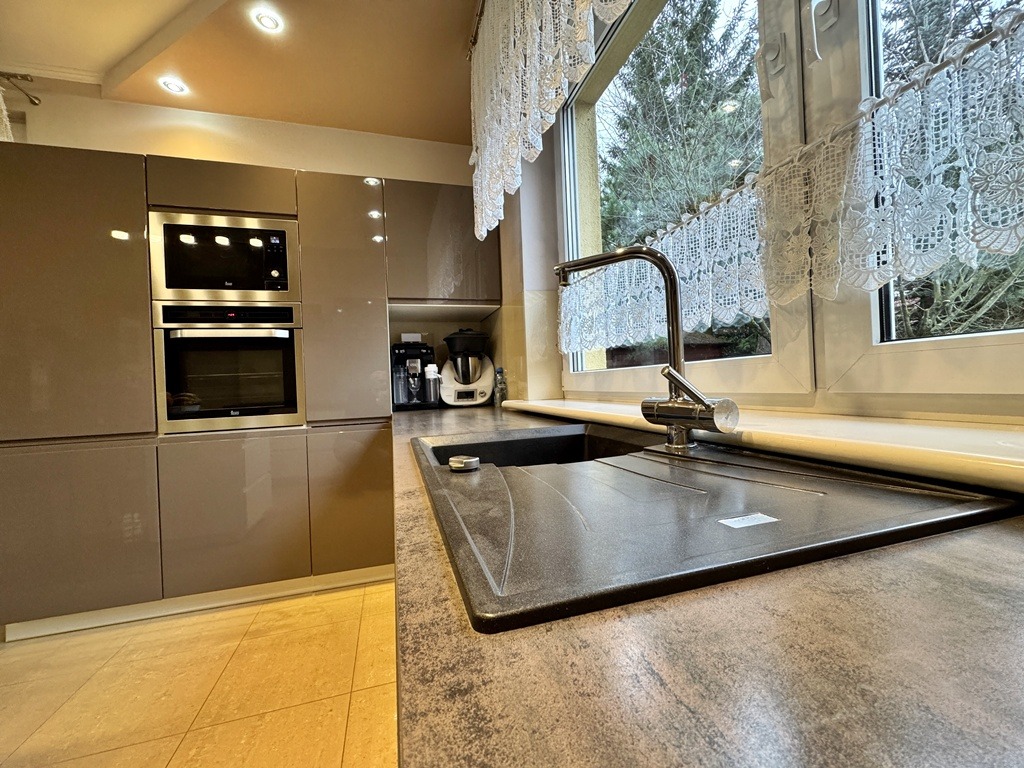 ✔ Bardzo niskie koszty utrzymania – fotowoltaika 6,03 kWp (stare korzystne zasady), piec gazowy Buderus + pompa ciepła do CWU.