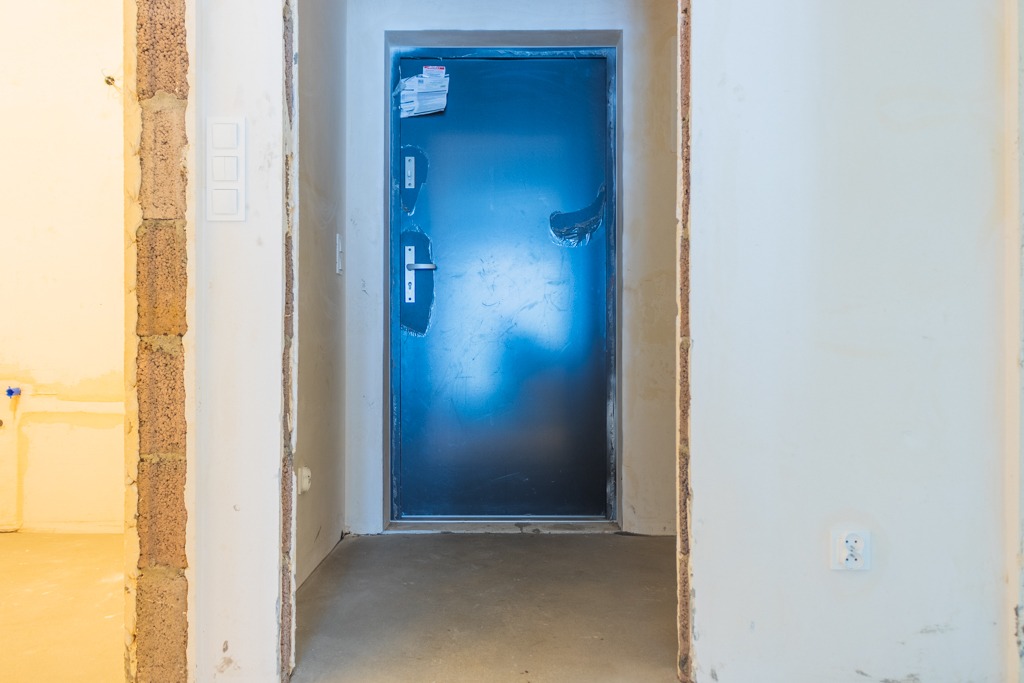 Drzwi zewnętrzne: Solidne, antracytowe, o grubości skrzydła 68 mm.
