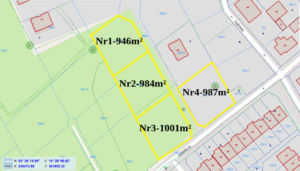 4 działek wraz z wielkościami: