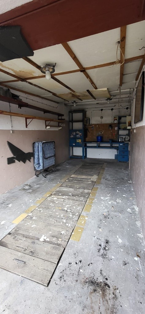 Powierzchnia garażu – 18 m. Garaż jest wyposażony w  kanał, prąd oraz ocieplony dach