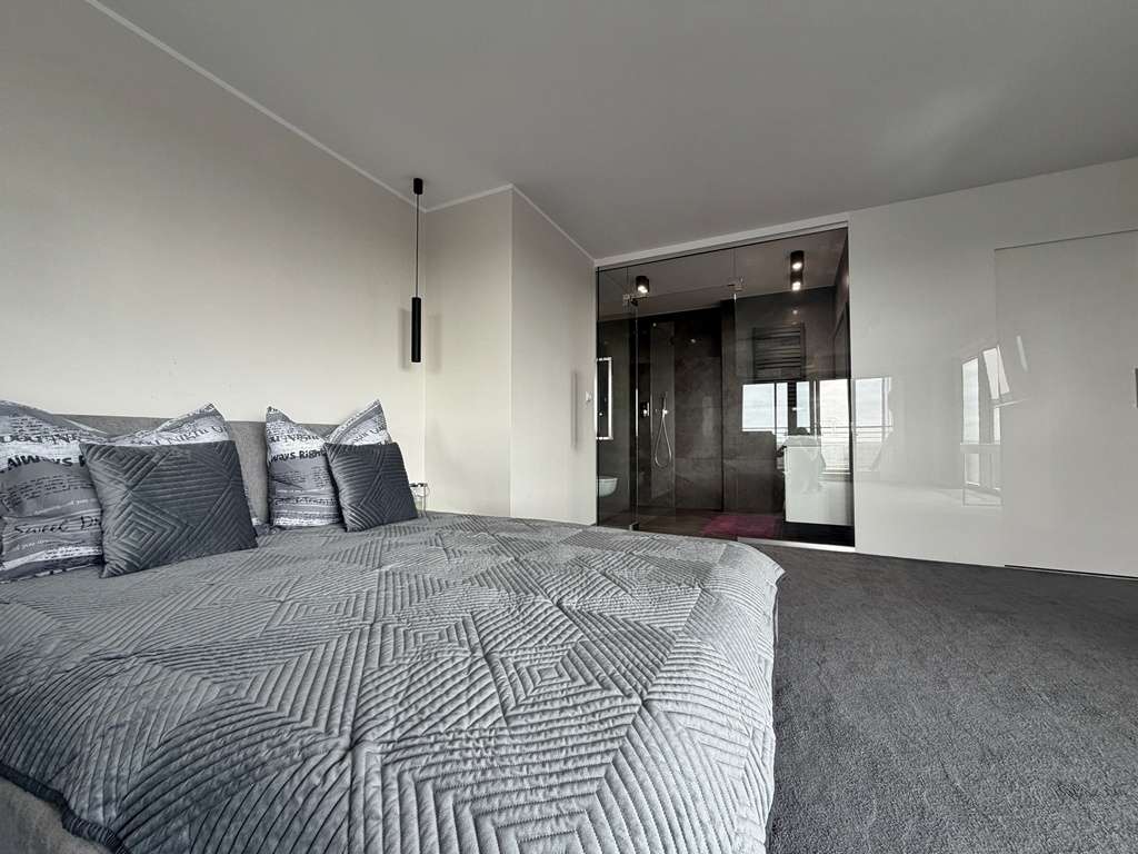 Apartament został wykończony w wysokim standardzie, z wykorzystaniem starannie dobranych materiałów i eleganckich rozwiązań aranżacyjnych. Pełne wyposażenie oraz zabudowy wykonane na wymiar gwarantują komfort użytkowania i sprawiają, że nieruchomość jest gotowa do zamieszkania lub natychmiastowego wynajmu.