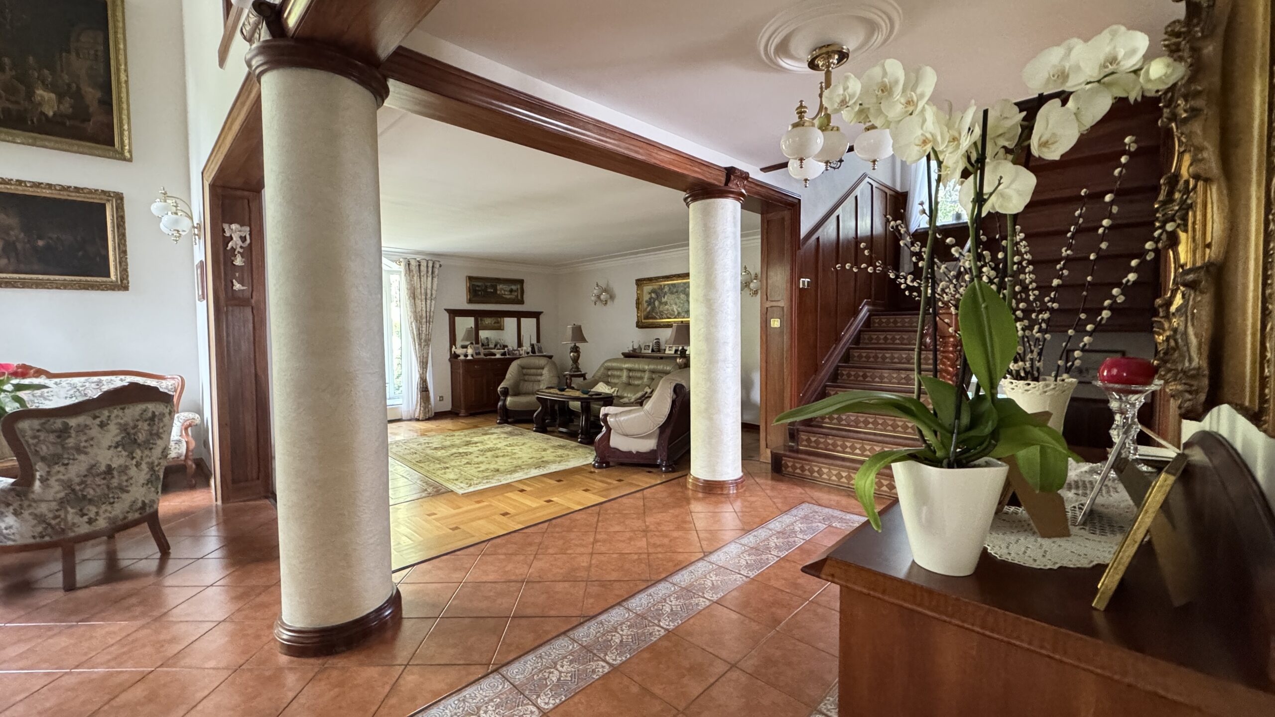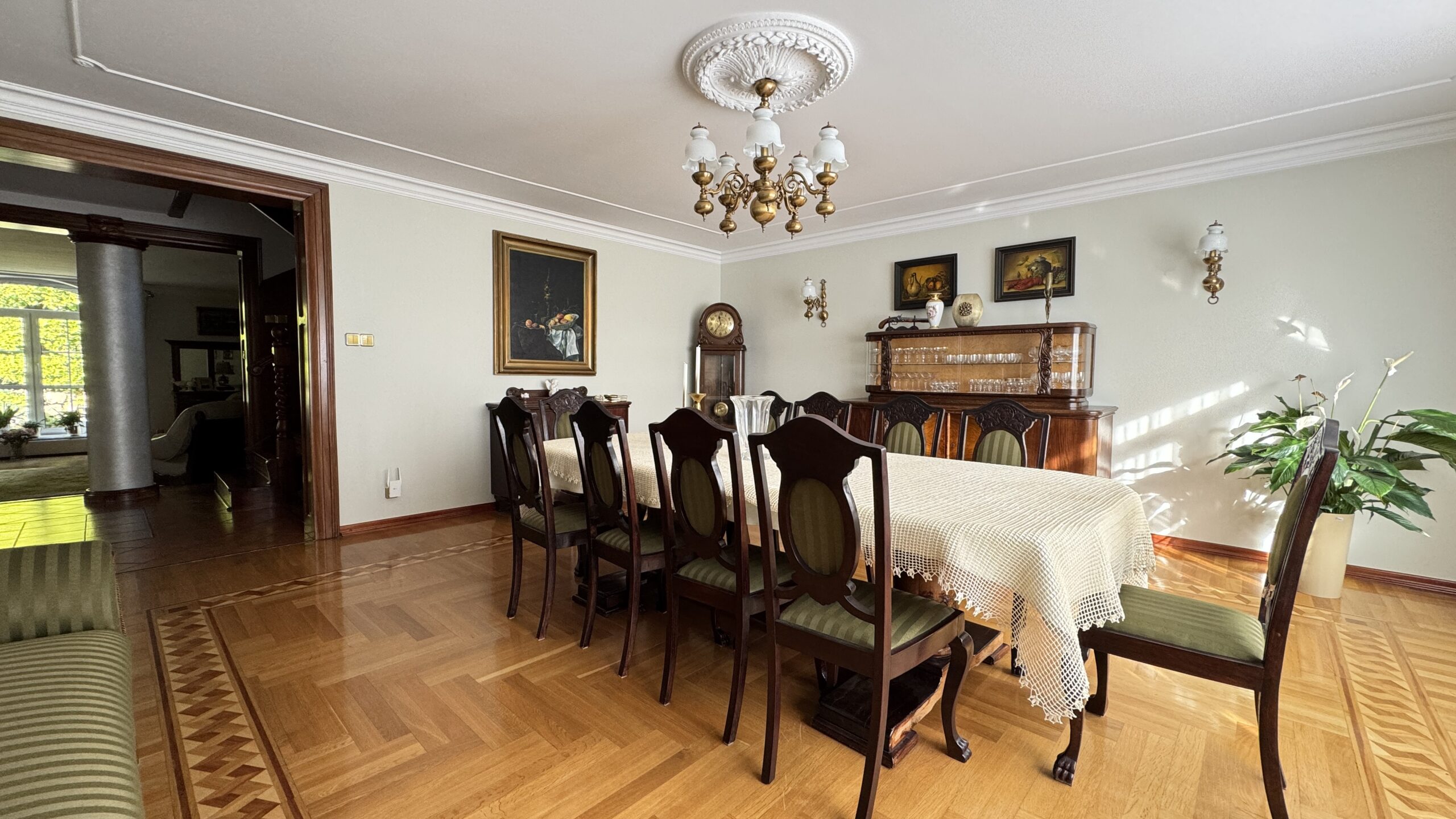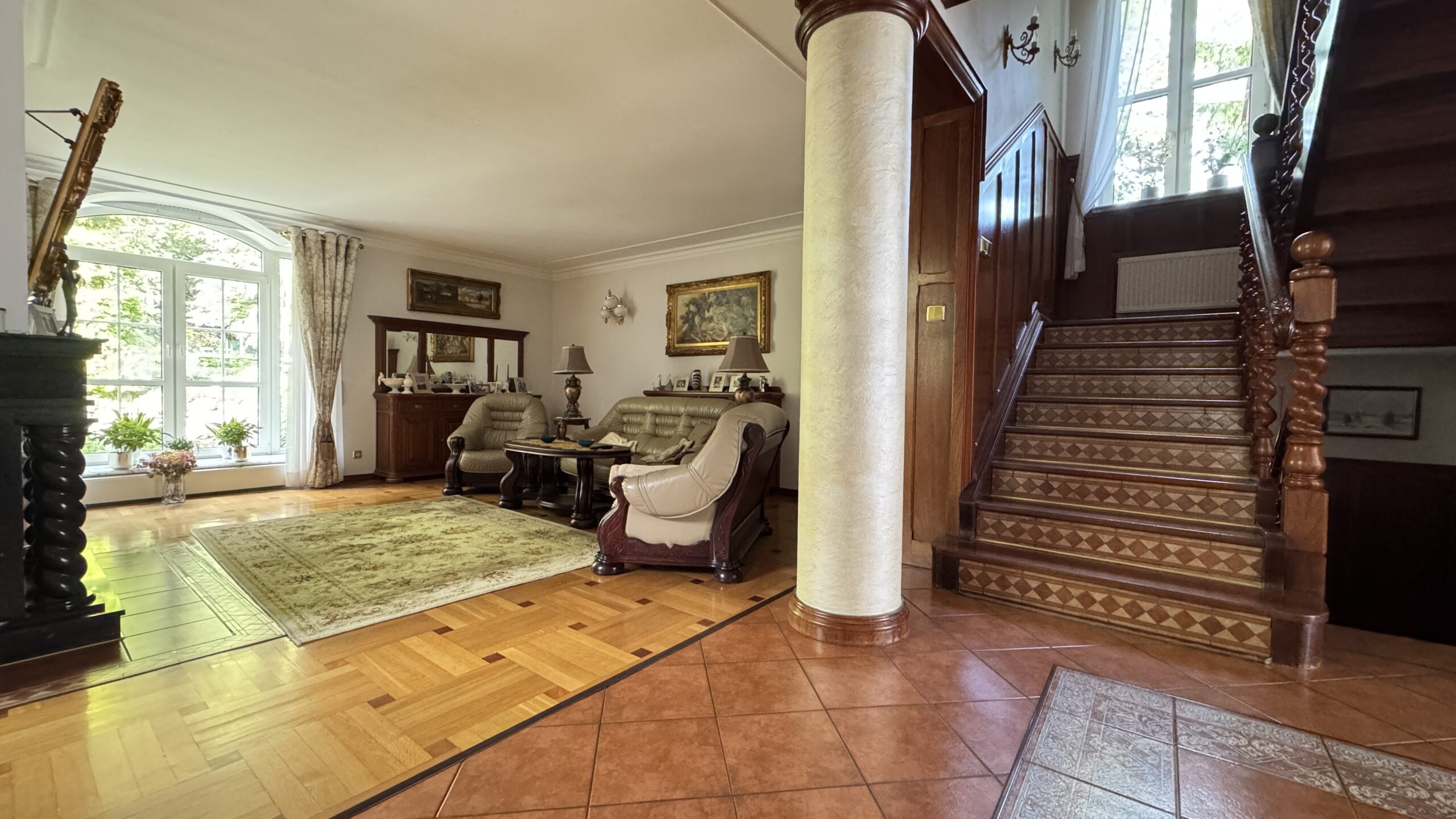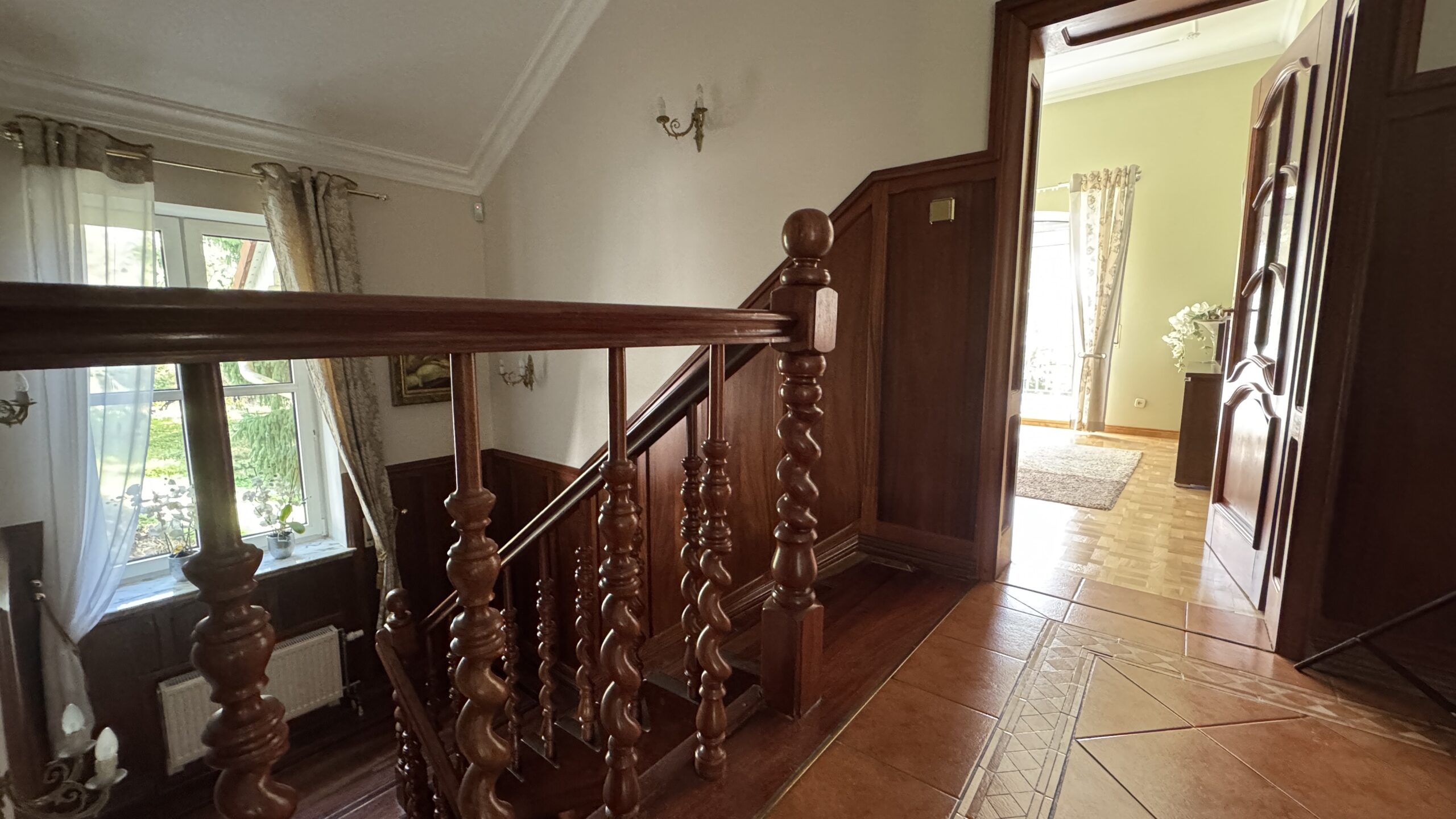 Podłogi wykończone parkietem inkarskim, a futryny, drzwi wykonane zostały z mahoniu Bodo – wszystko utrzymane w spójnym, klasycznym stylu.