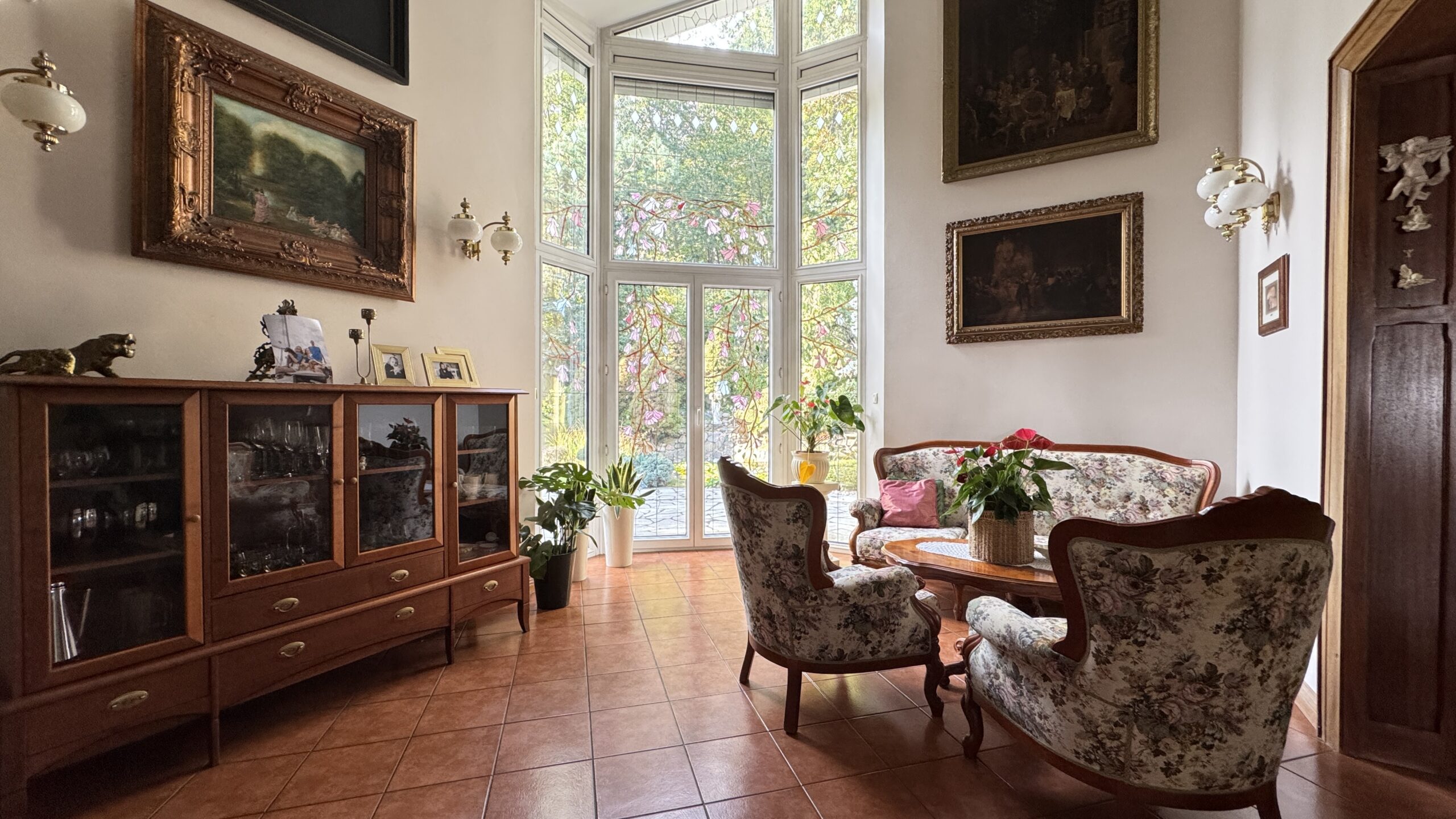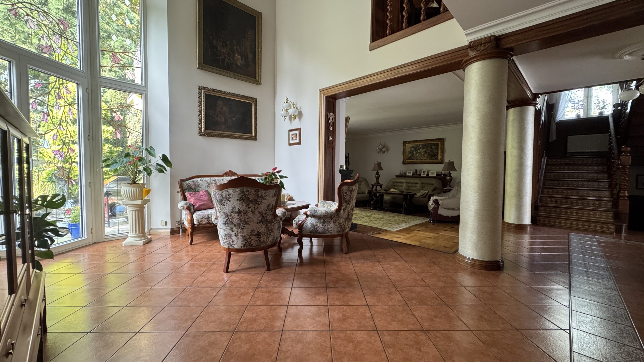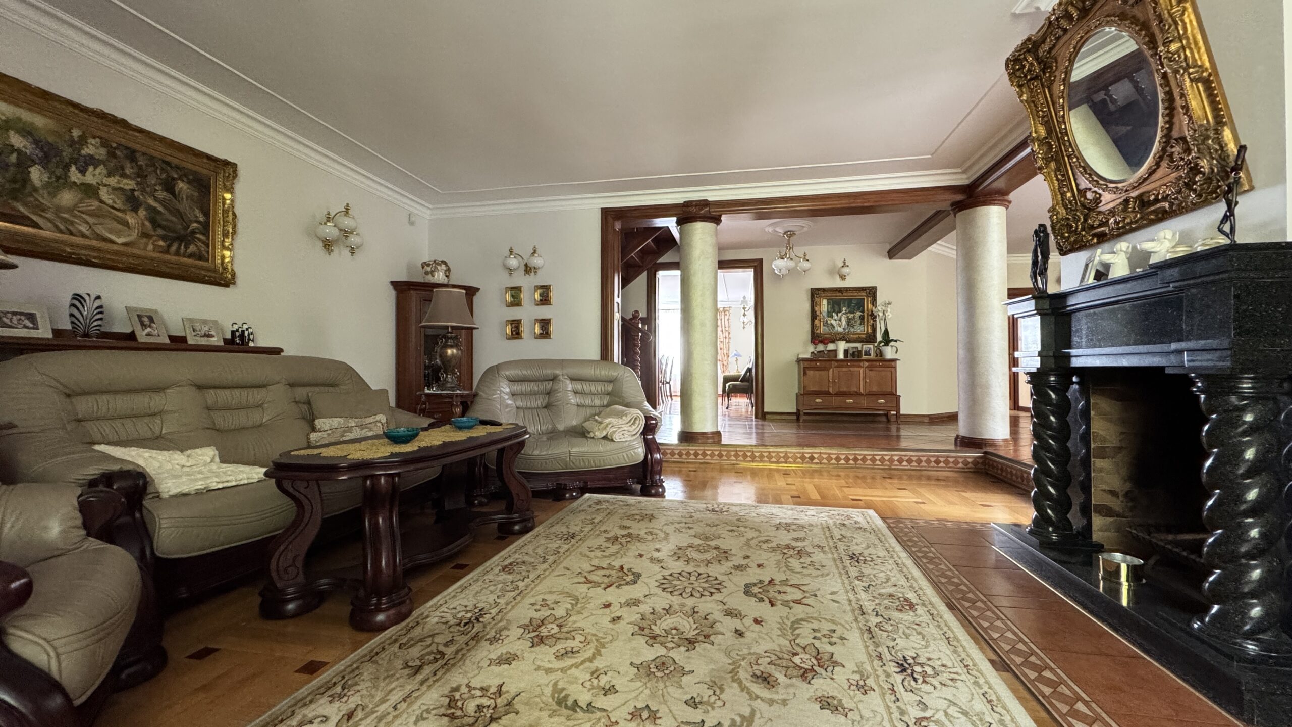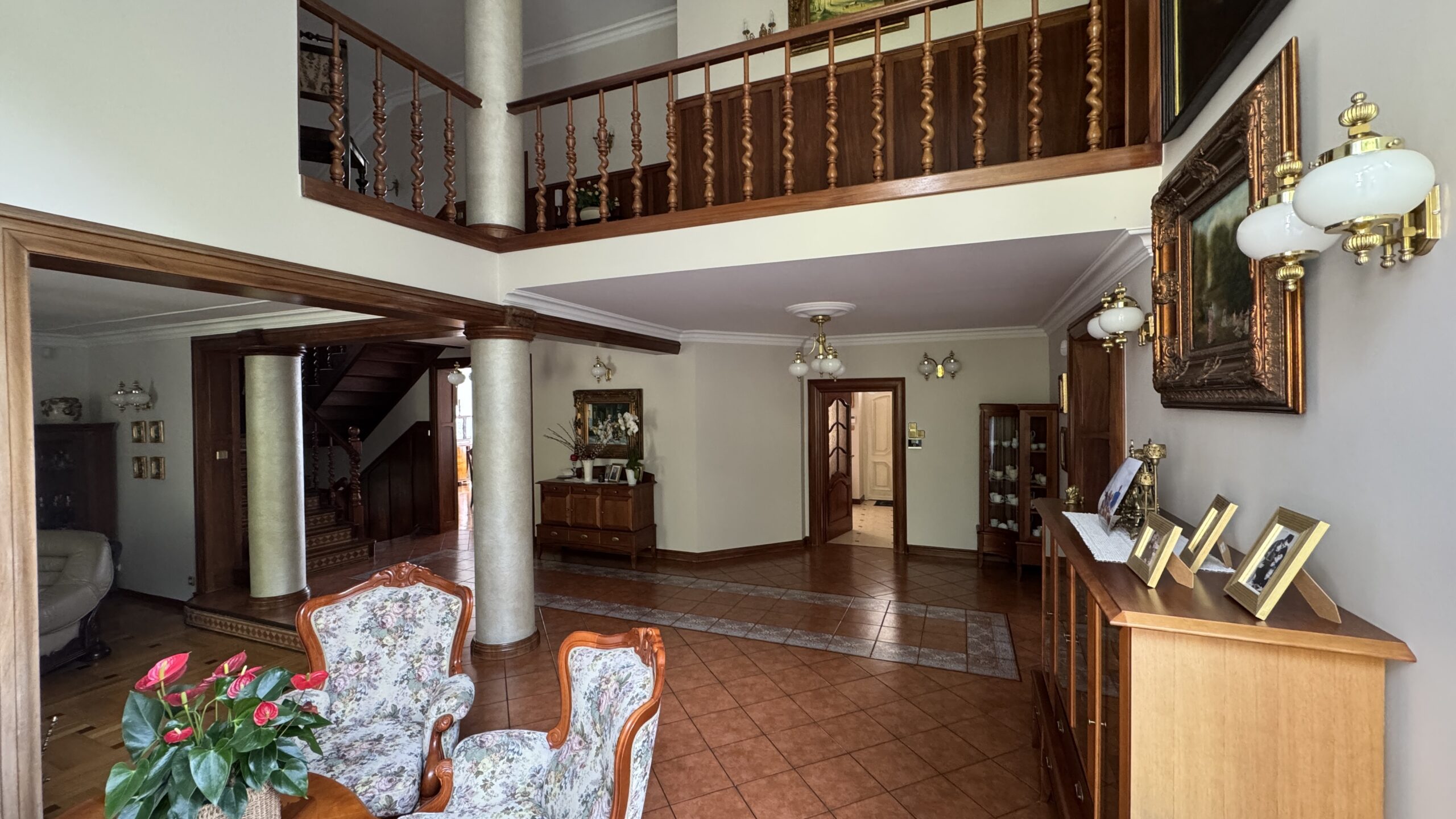 Podłogi wykończone parkietem inkarskim, a futryny, drzwi wykonane zostały z mahoniu Bodo – wszystko utrzymane w spójnym, klasycznym stylu.