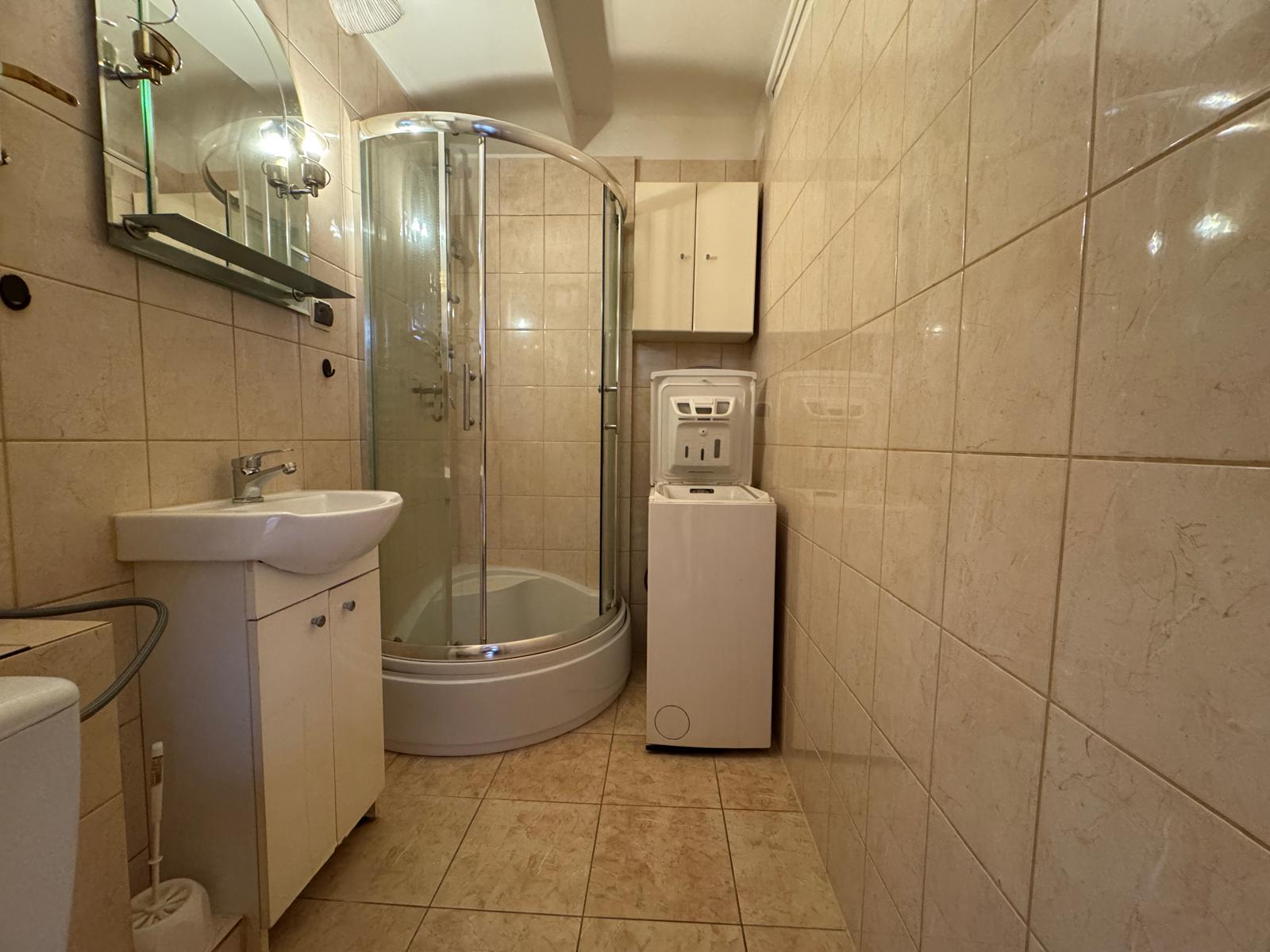 W łazience znajduje się duża wolnostojąca wanna z dużym oknem co powoduję , że łazienka jest jasna .
