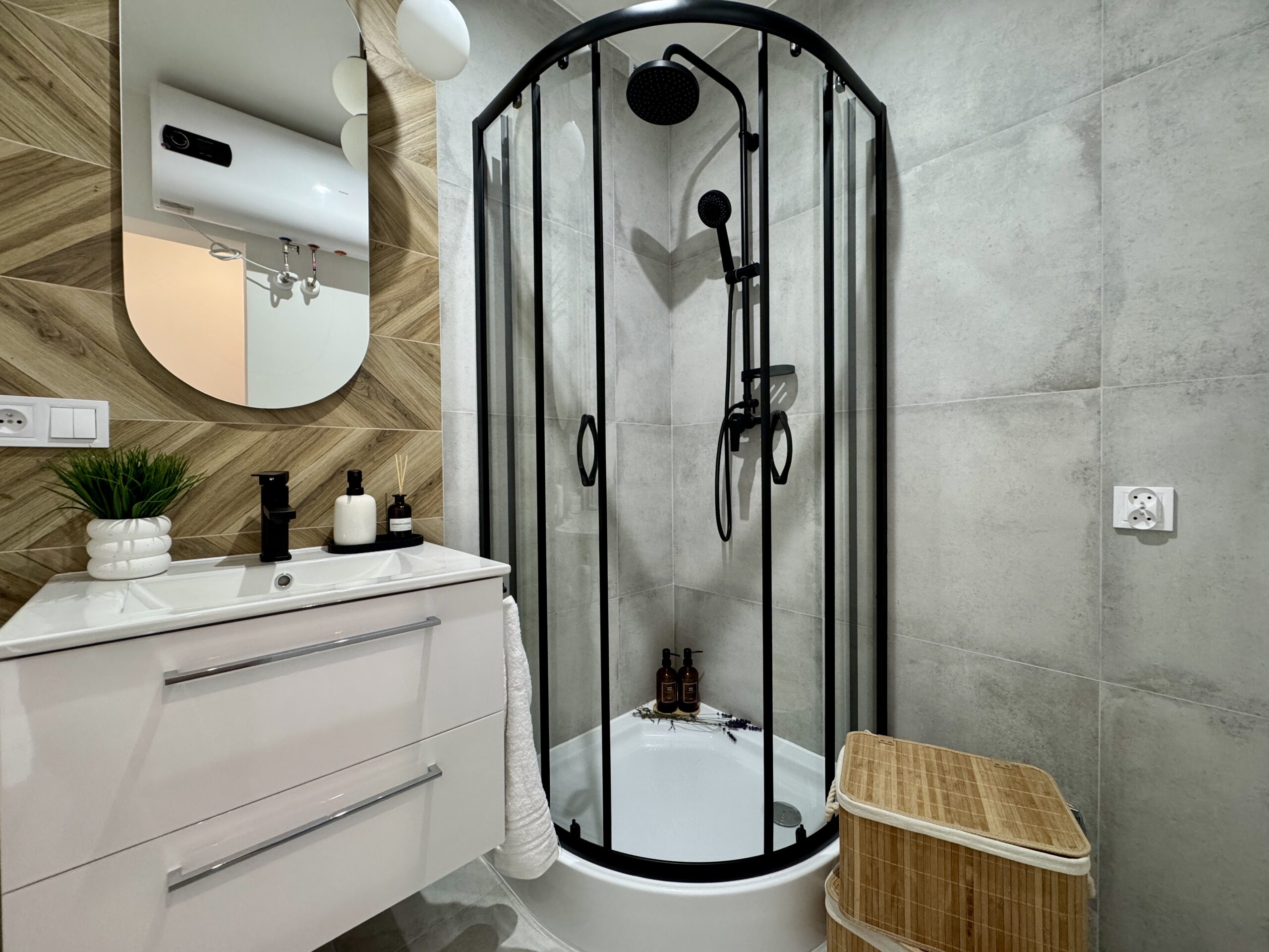 Łazienka : z kabiną prysznicową, po remoncie – wymienione instalacje: elektryczna oraz wodno-kanalizacyjna