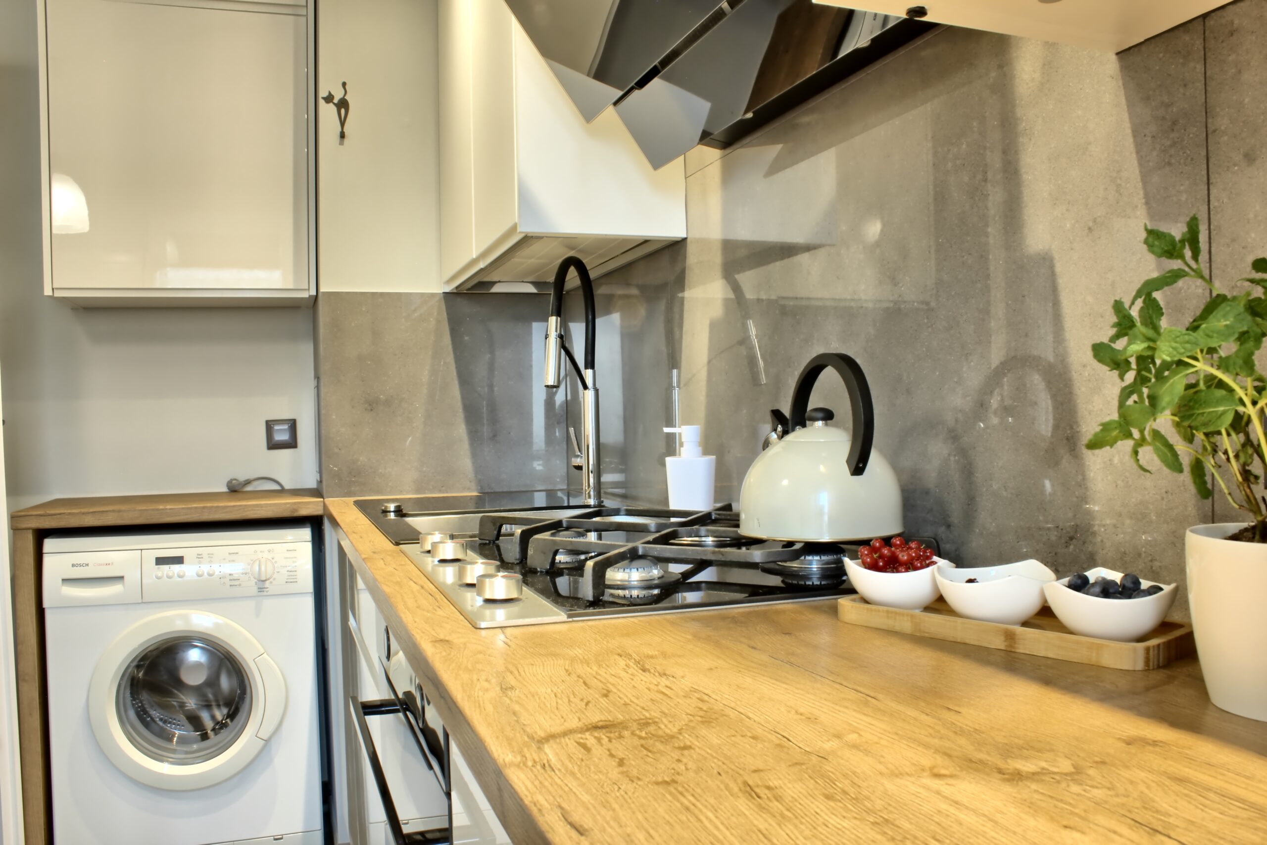Kuchnia : zabudowa na wymiar, wyposażona w sprzęty AGD – gotowa do użytkowania