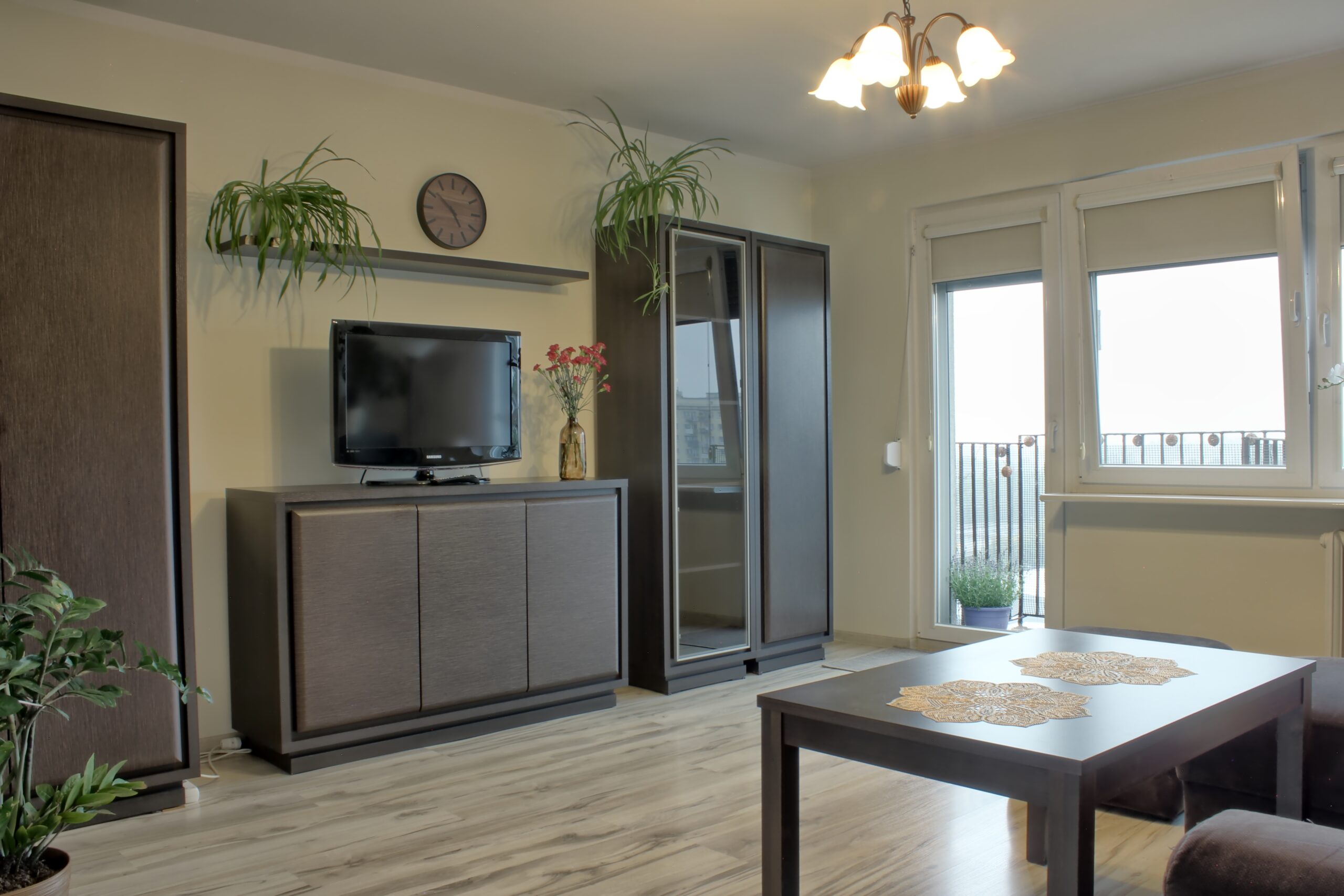Salon z wyjściem na balkon