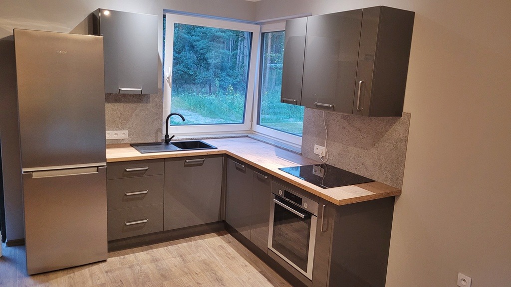 • przestronny salon z możliwością dowolnej aranżacji, połączony z aneksem kuchennym w pełni wyposażonym w sprzęt AGD