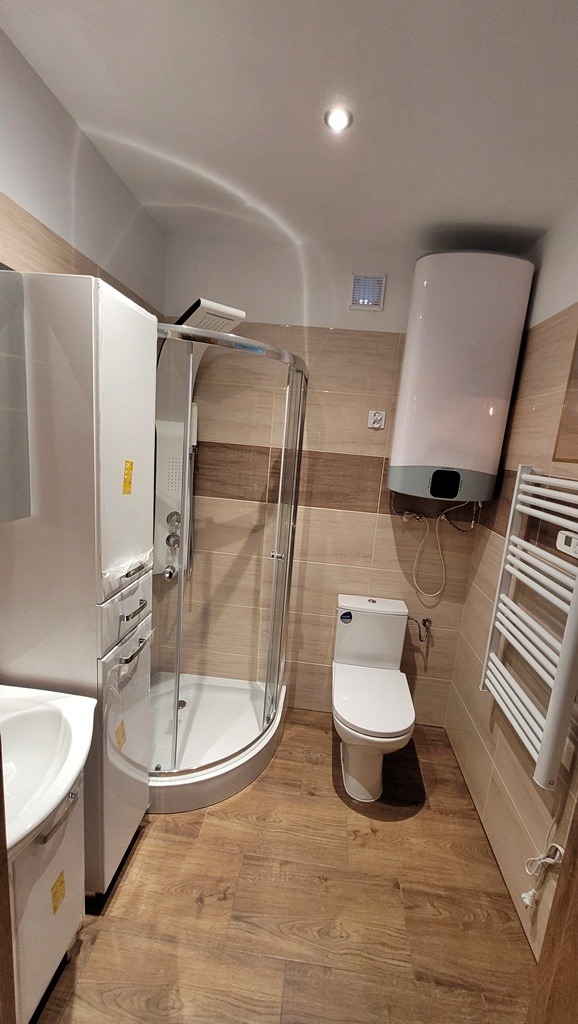 • łazienka z niezbędnym wyposażeniem sanitarnym