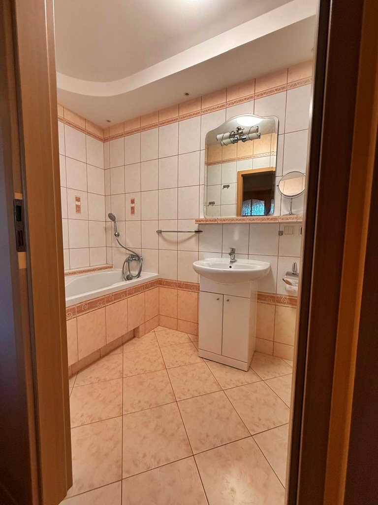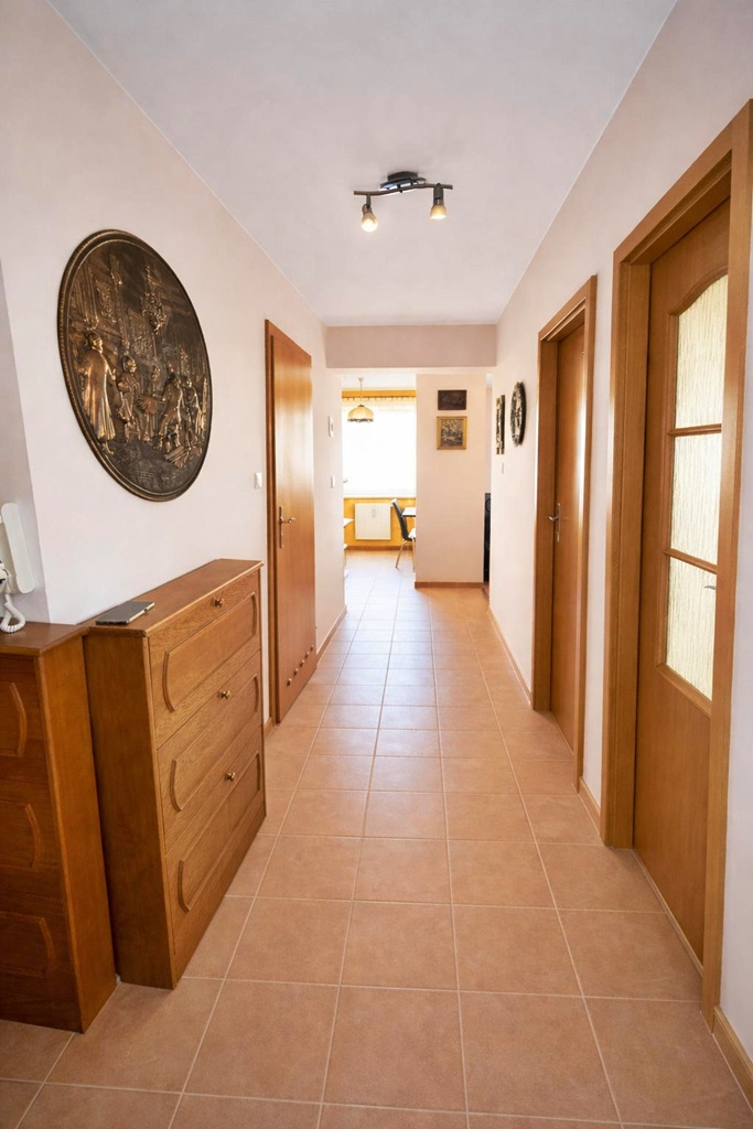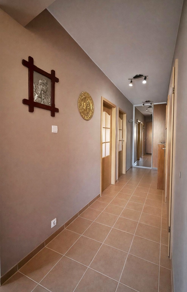 Mieszkanie wyróżnia się funkcjonalnym układem pomieszczeń oraz dużą przestrzenią komunikacyjną. Przestronny korytarz daje dodatkowe możliwości zabudowy i przechowywania.