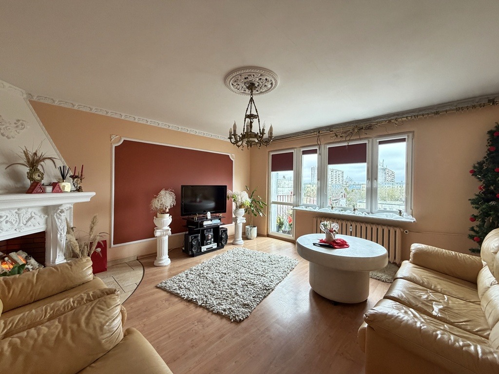 Salon z wyjściem na duży balkon – jasna, komfortowa przestrzeń dzienna idealna do wypoczynku.